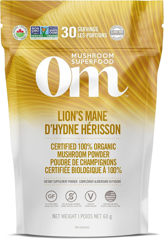 OM Mushroom Superfood - Lion's Mane Certified Organic Mushroom Powder - 60g