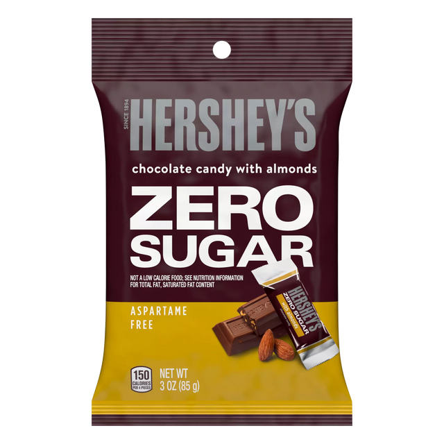 Indulge in the satisfying crunch of almonds and the delicious taste of sugar free chocolate with HERSHEY'S Zero Sugar Chocolate Candy Bars with Almonds. Expertly crafted for those looking for all the indulgence without the sugar.
