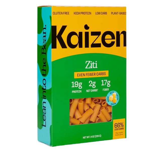 Gain knowledge about the satisfying, keto-friendly, low carb, and high protein Kaizen Pasta. Packed with 100% plant-based protein and fiber, this pasta provides great flavor and sustains fullness. Made in the USA and certified gluten-free and Kosher, each 8oz box offers 4 servings, making it perfect for any meal. Indulge in a guilt-free, high protein pasta experience with Kaizen - Keto Even Fewer Carbs High Protein Ziti Pasta.