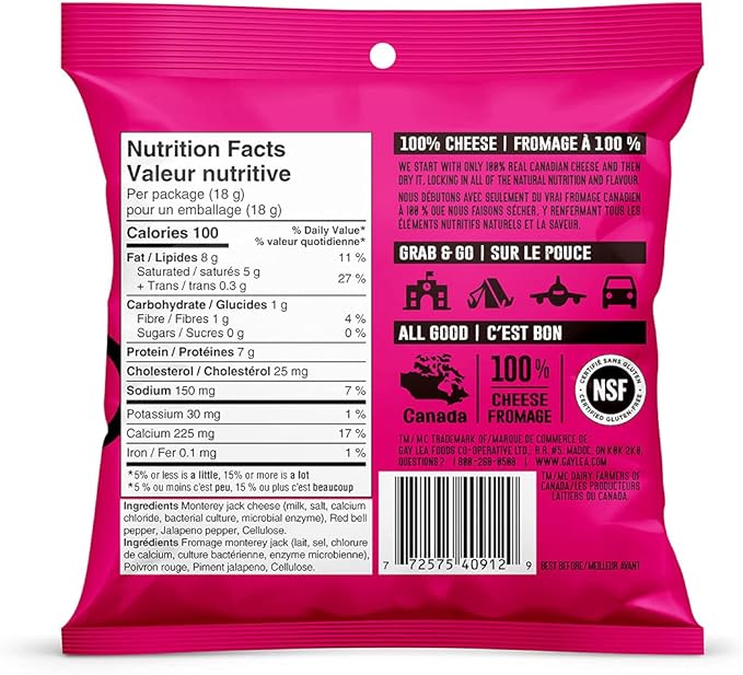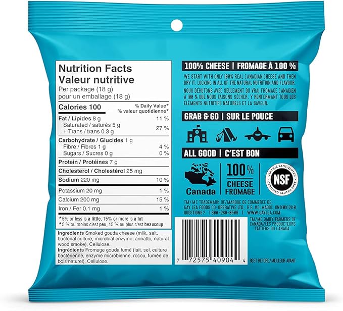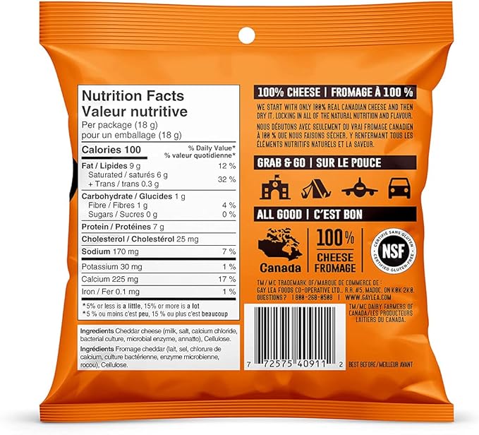 Every cheese product is precisely crafted from 100% Canadian dairy and meticulously evaluated for taste and purity. Perfect for the on-the-go lifestyle, these single-serve pouches are expertly portioned and packaged for easy enjoyment.