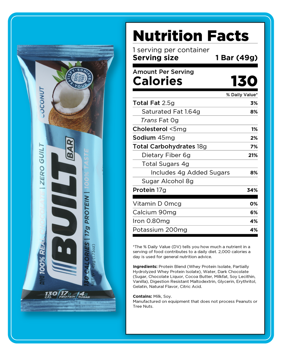 Built Bar is truly a standout among protein bars. With its exceptional nutritional profile and so many delicious flavors, Built Bar is the favorite protein bar of many discerning fitness trainers and fitness enthusiasts alike.