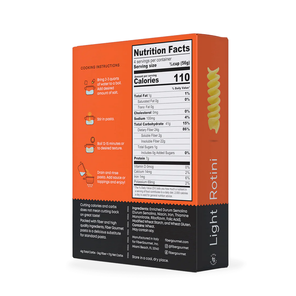 Fiber Gourmet - Pâtes Rotini riches en fibres et faibles en calories - 227 g