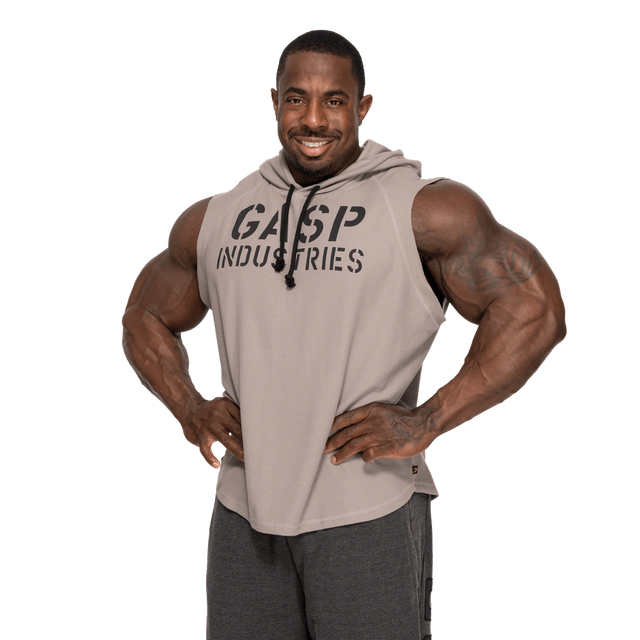 Caractéristiques: Sweat à capuche léger sans manches, capuche avec cordon de serrage, logo GASP Industries sur la poitrine, bas arrondi