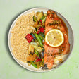 Ingrédients : truite, riz blanc, asperges, origan, sel marin, citron et épices.