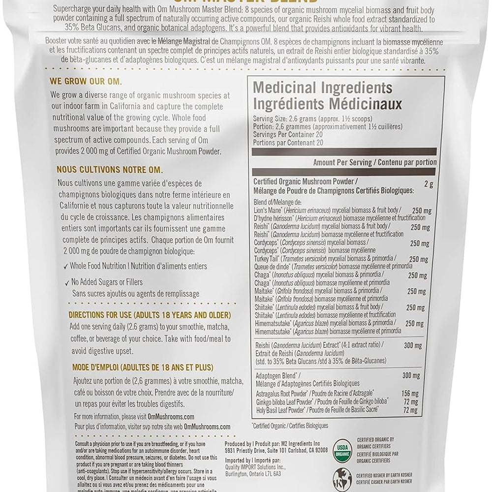 OM Mushroom Superfood - Mélange Master Blend de poudre de champignons biologiques certifiés - 54 g