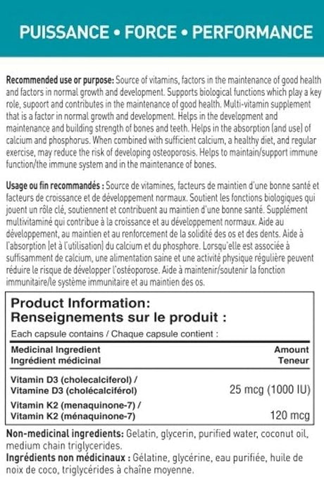Tested Nutrition - Vitamine D3+K2 - Haute Puissance 240 Gélules