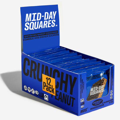 Si vous avez souvent un petit creux à midi au travail ou si vous devez reporter vos repas en déplacement, les Mid-Day Squares sont faits pour vous. Ces en-cas parfaitement conçus contiennent 6 g de protéines végétales, du vrai chocolat et sont une bonne source de fibres, ce qui en fait la solution idéale pour combler les petites faims entre les repas.