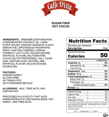 Caffe D'Vita - Chocolat chaud européen premium sans sucre - 283 ml