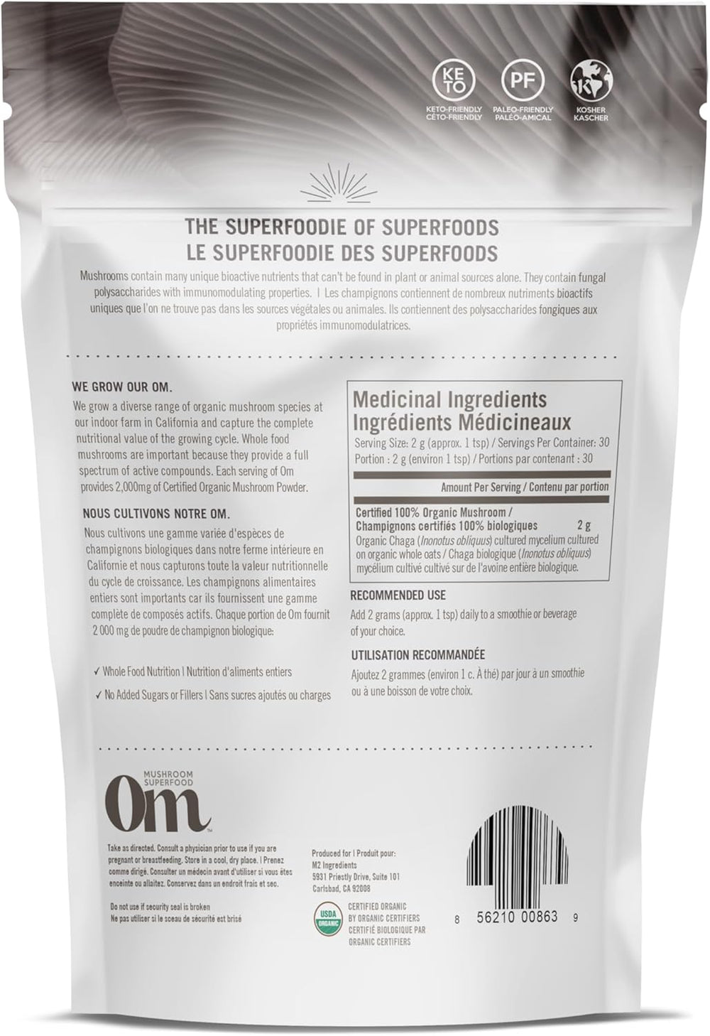 OM Mushroom Superfood - Poudre de champignon Chaga certifiée biologique - 60 g