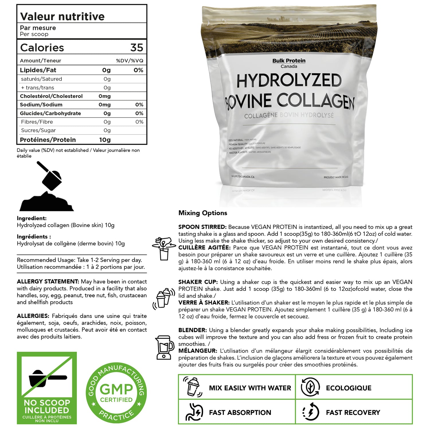 Bulk Protein Canada - Hydrolyzed Bovine Collagen - 100% Premium Canadian Powder